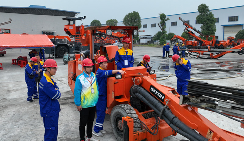 培訓(xùn)以“理論結(jié)合實(shí)踐”的模式開展,針對江西鑫通礦用掘進(jìn)鉆車和礦用錨桿鉆車展開教學(xué),理論課程涵蓋臺(tái)車的保養(yǎng)和維修知識(shí);設(shè)備實(shí)操通過結(jié)合模擬掌子面對眼、在巖石上進(jìn)行鉆孔等課程,為學(xué)員提升操作技能打下了堅(jiān)實(shí)的基礎(chǔ)。